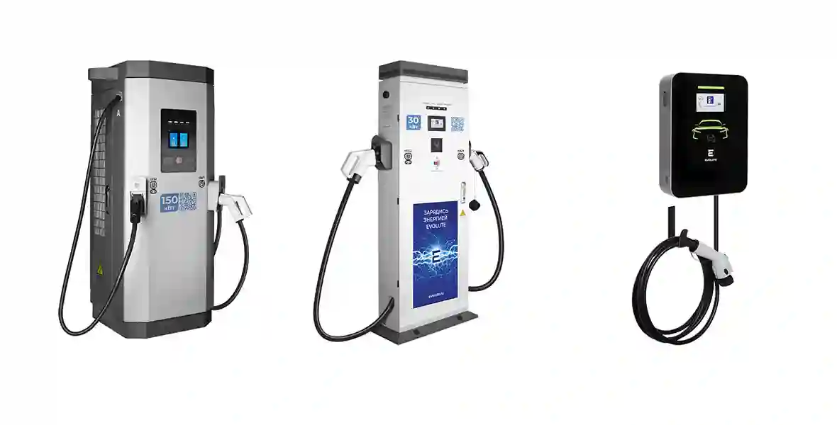 Автомобили Evolute заряжаются от фирменных зарядных станций. Фото: Evolute