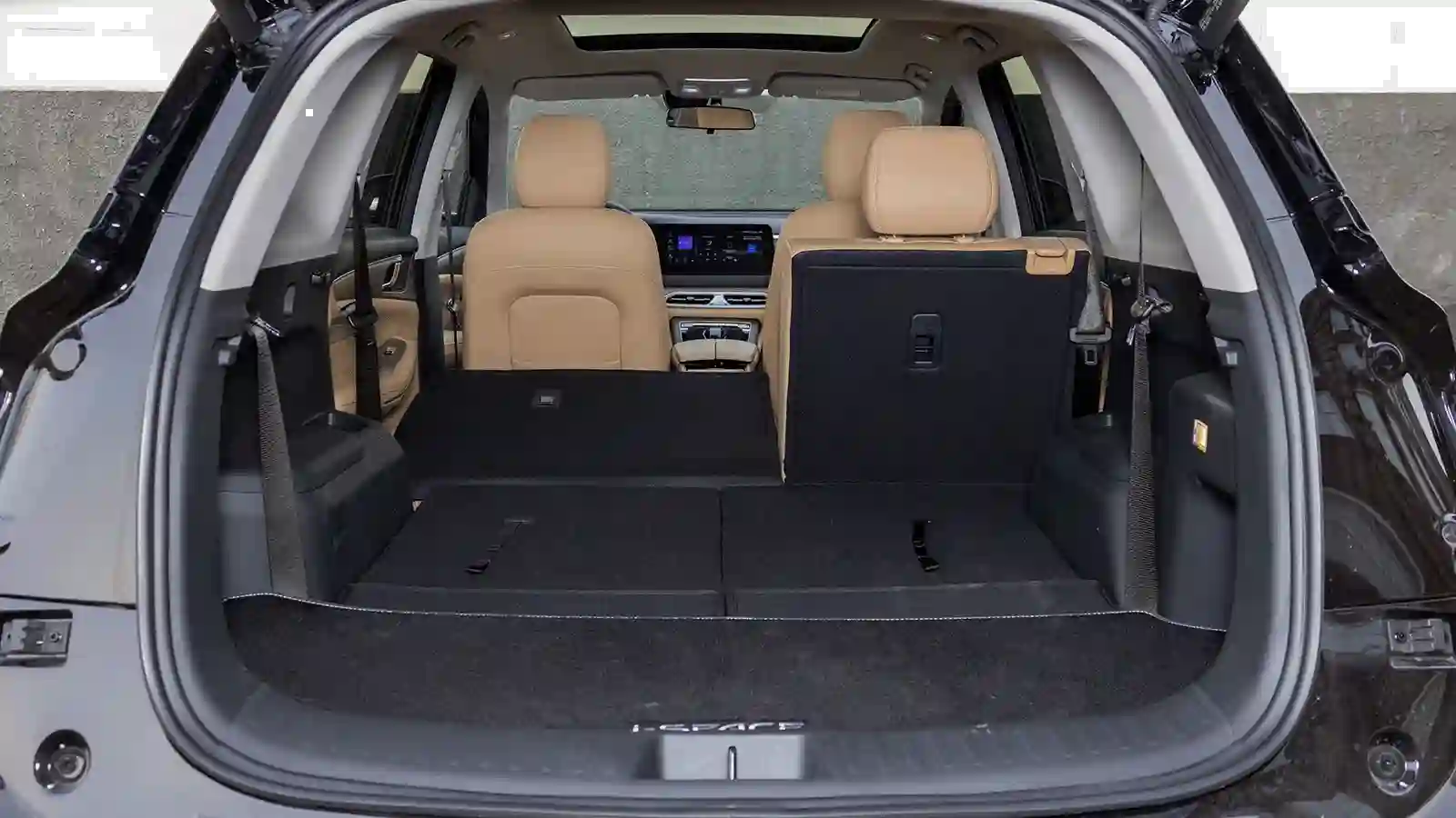Багажную дверь i‑SPACE сервопривод поднимает вместе с фонарями, как на некоторых Audi, поэтому проём получается широкий. Порог едва заметен, оба задних ряда сидений легко складываются, образуя ровную площадку. И в силу формы кузова EVOLUTE по предельным грузовым возможностям способен тягаться с комтрансом — кроссовер принимает на борт больше двух кубометров!